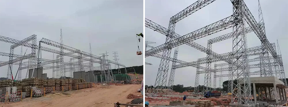 Они се потпуно разликују од стубова за пренос струје, који се користе само за подршку надземних далековода. Торњеви за пренос струје служе само као ослонци за пренос електричне енергије високог напона од тачке А до тачке Б, без трансформације напона или контроле снаге. Насупрот томе, челичне конструкције трафостаница су комплетни објекти који интегришу трансформацију напона, контролу снаге и функције дистрибуције енергије, опремљени основним компонентама као што су главни трансформатори, расклопна опрема и заштитни уређаји. Они су незаобилазни процесни и диспечерски центри у процесу преноса енергије. Њих двоје раде заједно како би формирали комплетну мрежу за пренос енергије.
