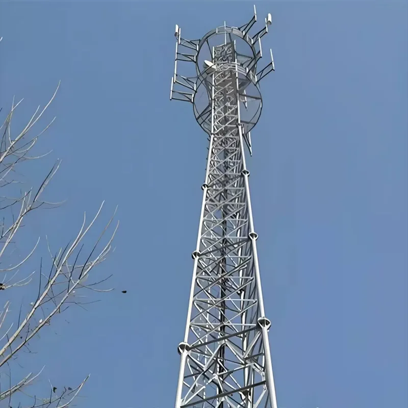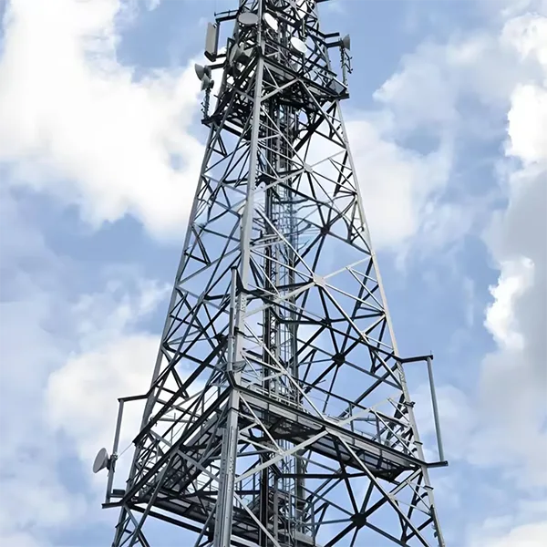 Угаоне челичне куле: Одликује се равномерно распоређеном решеткастом структуром налик на решетку, ови стубови нуде јаку носивост. Они могу истовремено да подрже више комплета антена и опреме за микроталасни пренос, што их чини посебно погодним за отворена подручја као што су предграђа и планински региони где су потребна комуникациона оптерећења високог капацитета.