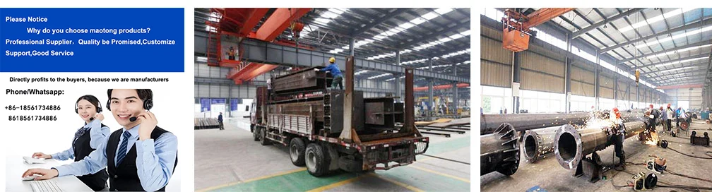 Материјал стуба компаније Маотонг од челичног торња Англе је бешавна челична цев, која има мали коефицијент оптерећења ветром, али јак отпор ветру. Практичан торањ са спољном прирубницом, отпорност на затезање вијака је јака, није лако оштетити, трошкови одржавања су знатно смањени.